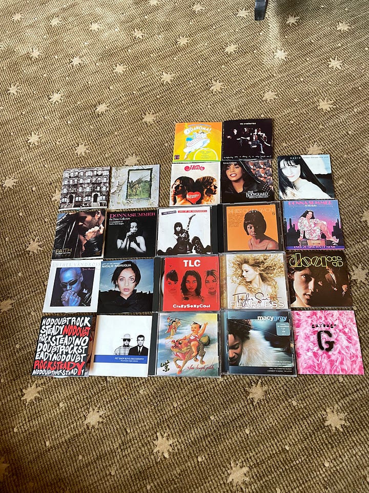 From there my interest avalanched. So I visited the Original Disc Jockey, my mother Suzanne. Elated by my request to finally raid her CD collection, we sat on the starred carpet of my childhood home paging through epic books of musical joy. My mom has her favorites.